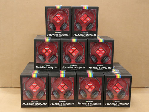 This lot includes 34 units of Black Foldable Wireless Headphones by Polaroid. These all are brand new in packaging and retail-ready.