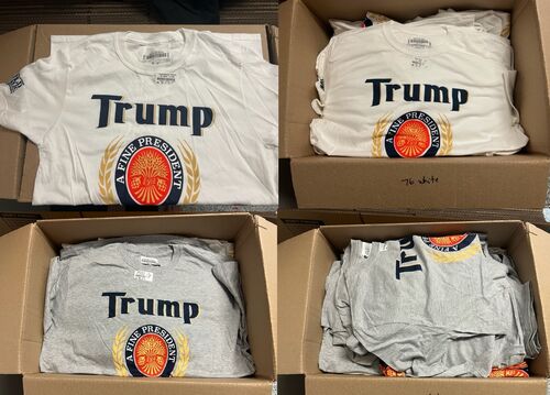 This lot includes 85 Trump Political T-shirts Mixes sizes, S/M/L/Xl/2XL in white and grey as shown.