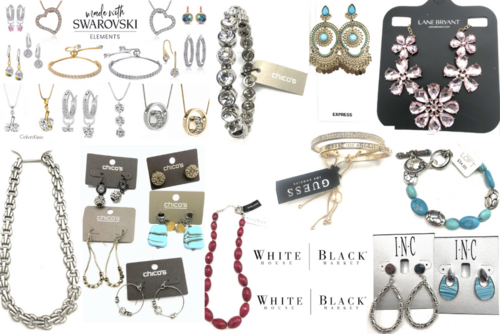 This lot includes Poshmark High-End Resellers Jewellery. We have developed this Reseller lot with the top-selling Designer Name Brand Jewelry on the market. Necklaces, Bracelets, Earrings & Rings. This Jewellery Sells Itself. Tons of different styles much more than shown in the pictures. For each lot, you will receive all the -All High-End Jewellery & Top Designer + Name Brand Jewellery. Laundry by Shelly Segal, Christian Siriano, Chico's, White House Black Market, Jewelry made w/Swarovski Elements, Express, The Limited, INC, Guess, Lane Bryant, Francesca's, Macy's, Nordstrom, Mix It Calvin Klein & more. Jewellery that sells on Websites for $20.00 to upwards of $40.00 each. Each lot will hold 50 pieces all High-End Designer + Name Brand Jewelry all is Genuine and Has Tags. All Brand New. NO JUNK- All Highest Quality Jewellery. Each piece is Boxed or individually bagged.