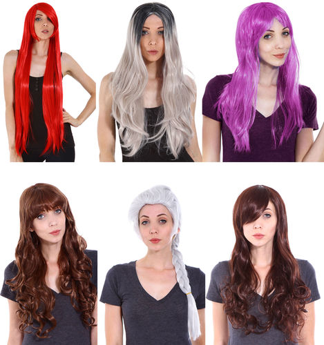 This lot includes Premium Quality Cosplay/Party Wigs in Assorted Colours. Fashionable wigs include a free wig cap, Feels and looks similar to real human hair, and Comfortable enough to wear daily and won't damage your own hair. See the manifest for a complete list of items.