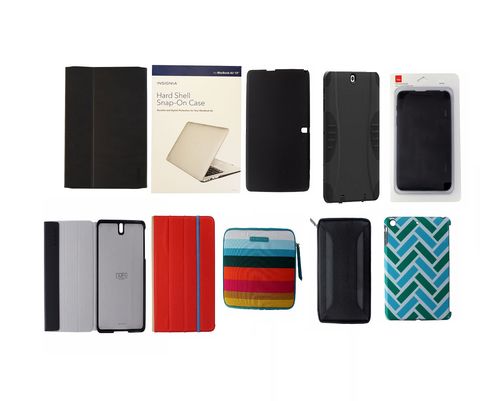 This lot includes 120 Units of New in retail hanging packs Assorted Name Brand Tablet Cases from Samsung, M-Edge, Insignia, Incipio, and More. See manifest for a breakdown. 10xIncipio Faraday Folio Protective Case Cover for Verizon Ellipsis 10 - Black, 10xInsignia Hard Shell Case for Apple MacBook Air 13 Inch - Gray, 10xSamsung Silicone Gel Cover Case for Samsung Galaxy Note 10.1 (2014) - Black, 10xVerizon Rugged Cover Case for Samsung Galaxy Tab S2 9.7 - Black, 10xVerizon Silicone Protective Case Cover LGVK810SILBK for LG G Pad 8.3 LTE-Black, 10xIncipio Faraday Series Folio Case Cover For Samsung Galaxy Tab S3 9.7 - Black, 10xM-Edge Trip Series Folio Case Cover for Kindle Fire HD 8.9 - Red / Brown / Blue, 30xTrina Turk Sleeve Pouch for 10-in Tablets / Microsoft Surface 10.8 - Bold Stripe, 10xM-Edge Latitude Series Protective Case Cover for Kindle Fire HD 8.9 Inch - Black, and 10xM-Edge Echo Series Protective Case Cover for Apple iPad Mini 1/2/3 - Blue/Green.
