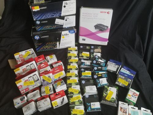 This is a lot of 47 pieces of Printer Ink and mini Photo Papers from Xerox, HP, Canon, Polaroid, and More. These are customer returns. Please see the pictures and manifest for more info.
