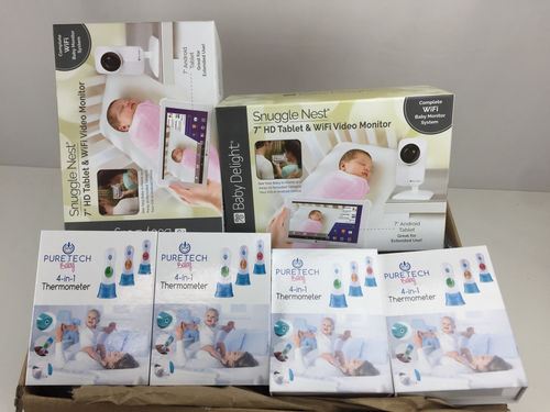 This lot contains different baby products from Puretech Baby, Keekaroo, Baby Delight, and more. All of the items are in new condition.