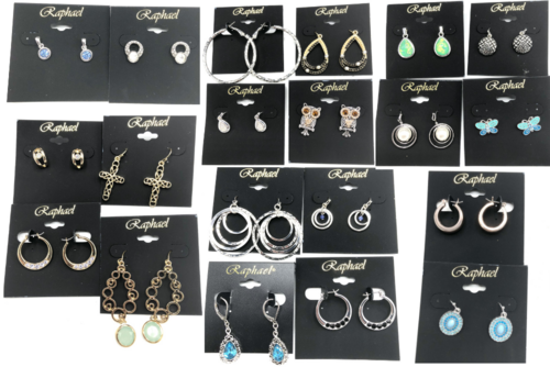 This lot includes 100 Pair Raphael Earrings -Tons of different styles! All new - not store returns. Plated in Gold, Silver, Rhodium, and Rose Gold. CZ, Austrian Crystal, Tailored etc. Hypoallergenic POST. NICKEL AND LEAD FREE.