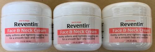 This lot contains Reventin Face & Neck Creams; Visibly Softens and Tightens Sagging Skin for a Smooth Face and Neckline. 2oz. All items are brand new and retail-ready.