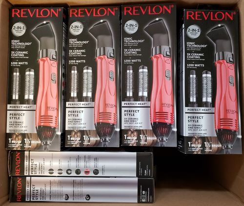This lot includes Revlon Perfect Heat 1200W Hot Air Dryer Kit with 3 Attachments. Flaunt beautiful volume and silky curls. 1200 Watts of power conveniently dry the hair, while the 1 and 1 ½ barrel attachments create smooth volume or soft curls. This 2-in-1 ceramic and ionic hot air brush dryer kit features a triple ceramic coating and IONIC TECHNOLOGY to help reduce frizz and add a brilliant shine to keep you turning heads everywhere you go. These units are (mostly) untested customer returns from TGT stores. We tested 10 units out of the lot and they all worked great! These are nice units, very clean load. These units are customer returns. Packaging may have retail stickers or sticker residue.