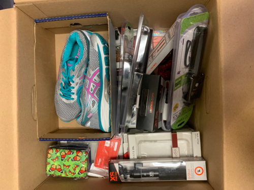 This lot includes 97 Units of different products, RFID Wallets, Cellphone Accessories, and Shoes New in Retail Boxes. See the manifest for products breakdown.
