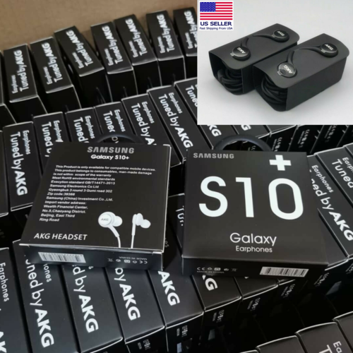 This lot includes Samsung Galaxy S10 Plus, S10 E, and S10 Earphones Headset Headphone from AKG. All items are brand new and ready for retail.
