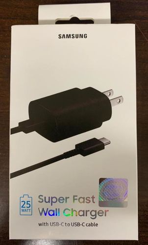 This lot includes 25 units of New Samsung Super Fast 25 watt Wall chargers in Black. EP-TA800, Comes with USB C to Type C Cable. Comes in retail box.