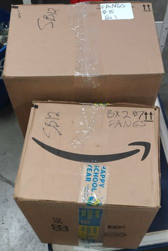 This lot contains 100 units of Scarecrow Classic Deluxe Custom Fangs. The products are all brand new with slightly damaged packaging so they are listed as shelf pulls. All items are "sold as is"; please see manifest for complete details.