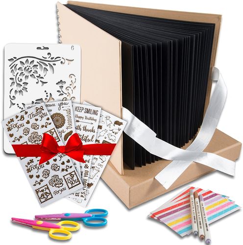 This lot includes Scrapbook Photo Album DIY Kit, I Deal Wedding, Anniversary Book Family Memory Box w/Accessories - Keep Favorite Memories Alive - 80 Thick Pages, 320 Photos - Scrapbooking Birthday or Graduation Gift. DIY ALBUM SCRAPBOOK w/High-quality box, 3 markers, 4 sticker sheets, stencil, 3 photo corner sheets, 2 scissors. TOP QUALITY THICK, DURABLE 8O PAGE 40 SHEET 12.4” x 8.2” scrapbooking album fits 320 photos! CAPTURE LIFE’S CHERISHED MOMENTS! Record graduation and birthday parties; use as a travel log. PHOTO SCRAPBOOK ALBUM FEATURES photo storage & accessories box, wrap tie closure, sturdy binding. CLASSY GIFT BOX holds letters/artwork! Gift for a birthday, Mother’s or Valentine’s Day, baby gift.