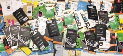 This lot includes 270 pcs of different Screen Protectors for different Cell Phones from ntelliARMOR, Zinx Digi, and Many More. Some of the phones that these will fit are iPhones, Samsung, & Google Pixel. All items are brand new and retail-ready.