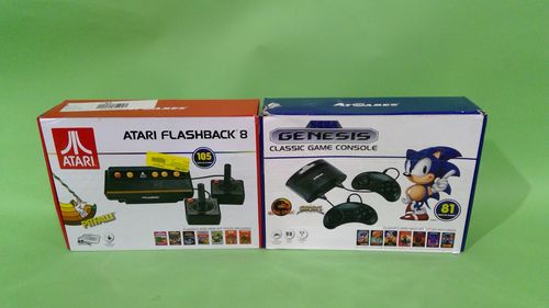 This lot includes SEGA Genesis Classic Gaming Console and Atari Flashback 8 Game Console by At Games. All of our customer return inventory has not been inspected by our facility. Merchandise has been sold to an end user and returned through a retail chain, manufacturer and/or distribution centre. All images are a representation of the actual merchandise. Units may have return labels and/or stickers.