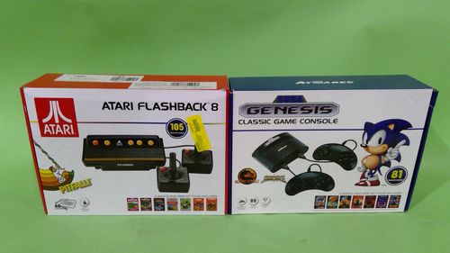 This lot includes SEGA Genesis Classic Gaming Console and Atari Flashback 8 Game Console by At Games. All of our customer return inventory has not been inspected by our facility. Merchandise has been sold to an end user and returned through a retail chain, manufacturer and/or distribution centre. All images are a representation of the actual merchandise. Units may have return labels and/or stickers.