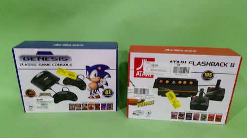 This lot includes SEGA Genesis Classic Gaming Console and Atari Flashback 8 Game Console by At Games. All of our customer return inventory has not been inspected by our facility. Merchandise has been sold to an end user and returned through a retail chain, manufacturer and/or distribution centre. All images are a representation of the actual merchandise. Units may have return labels and/or stickers.