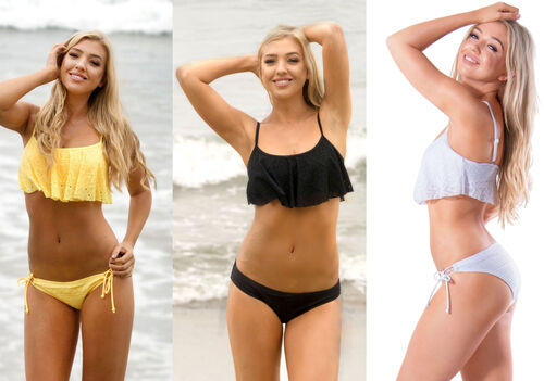 This lot includes Sexy Women's Mesh Ruffled Crop Bikini Set. Material: Shell: 92% Nylon + 8% Spandex, Lining: 80% Nylon + 20% Spandex, 100% Polyester. XS: Chest: 20.5" Waist: 23", S: Chest: 22.5" Waist: 25", M: Chest: 24.5" Waist: 27", L: Chest: 27.0" Waist: 29", and XL: Chest: 29.5" Waist: 32".