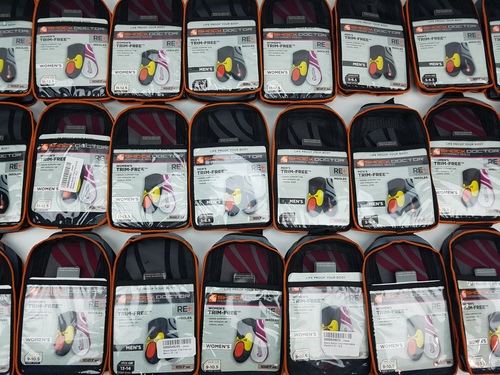 This lot contains exclusive Shock Doctor Insoles in various sizes and models. All of the items are brand new and in their original packaging (retail-ready).
