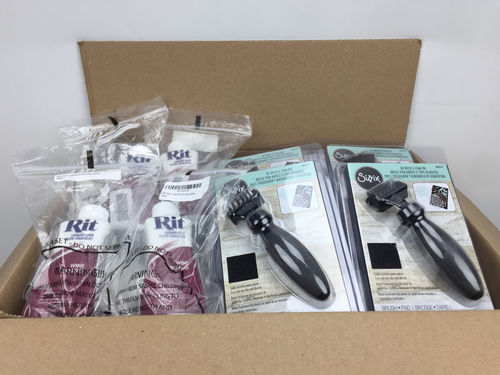 This lot contains diverse household items from Sizzix, Rit Dye, and more. All of the items are in new condition.