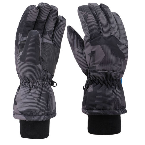 This lot includes Ski Men's Gloves for Cold Winter, Black. Materials: Woven Polyester, 3M Thinsulate Lining. L: 7.25 inches from elastic to end of middle glove finger, 5.25 inches across the palm of gloves, 12.5 inches total length.