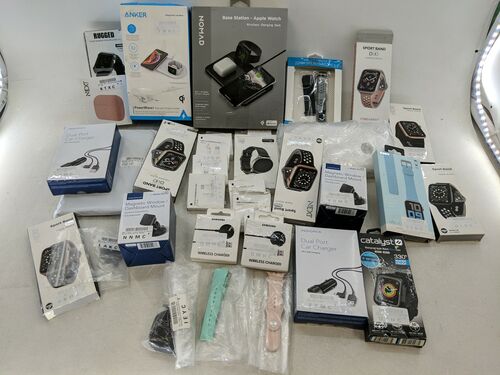 This lot includes assorted Smart Watch Accessories by Nomad, Anker, Catalyst, Samsung & More. All customer returns. May be missing accessories. Boxes have stickers, and tape and generally have wear. Product packaging may be missing. Products may be repackaged or polybagged.