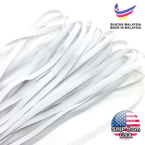 This lot includes 200 packs of readily packed White Elastic Bands. 2.5/8in width ( 7 / 8mm ). Each pack is 11 Yards. Total 2200 Yards. The elastic band is made in Malaysia, not from China. Made of polyester fibre and softer material, the elastic band is sturdy and durable. If the band is used as the ear loop for the mask, the softer texture will make it more comfortable for long hours wearing.