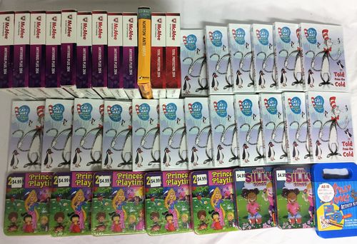 This lot contains different Softwares, Games, Music, Movies, TV Series, Antiviruses, and More DVDs from McAfee, Windows, Norton, and More. Most items are in original, sealed packaging. Please see pictures and manifest. All items in this lot are untested, big box store returns. Some packaging may have labels or stickers. Some items may have damaged or missing packaging, missing parts or have technical issues. Sold AS IS.