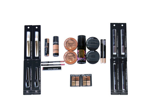 This lot includes assorted mixture of Sonia Kashuk makeup. Bronzers, concealers, eyeliners, body oil, and foundations. Brand new in sealed packaging.