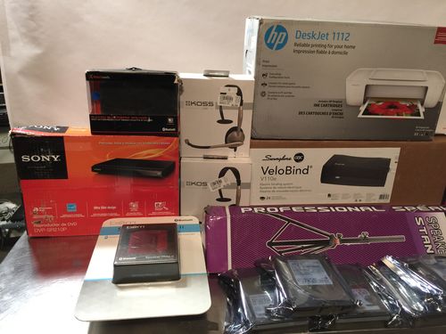 This lot includes Sony, Samsung, HP, TP-LINK & more with a total msrp of $2,209.71 : TYPES OF UNITS INCLUDED : + 100% Guaranteed Fully Functional Units, Mix of New, Open Box, & Refurbished Product. + Swingline V110E GBC VeloBind Binding Machine + TP-LINK Archer C5 AC1200 Dual Band Wi-Fi Router - Black + Blackweb BWA17AA001 Rugged Bluetooth Speaker + NO WARRANTY *** REFURBISHED UNIT DISCLAIMER *** Units are 100% fully functional. They may have cosmetics defects such as scratches, cracks, dings, dents, and more. = Click 'Download Manifest’ to view the full contents of this lot LOT SKU: IHP-20R-CON-001