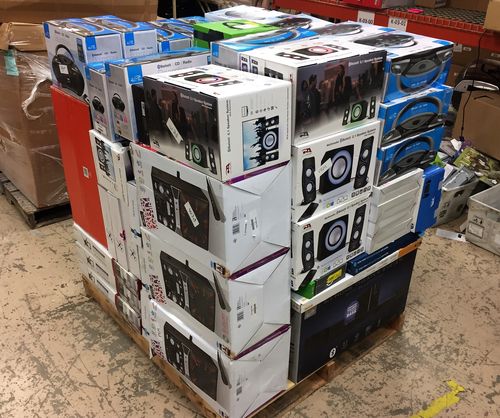 This lot contains different DVD Players, Speaker Systems, Karaoke Machines, TV Wall Mounts, Drones, and Much More from iLive, Hover-1, Sky Rider, Onn, and More. Please see pictures and manifest. All items in this lot are untested, big box store returns. Some packaging may have labels or stickers. Some items may have damaged or missing packaging, missing parts or have technical issues. Sold AS IS.
