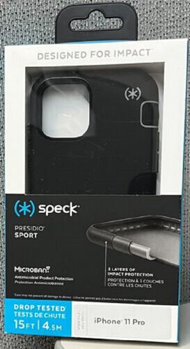 This lot includes New in retail box 100 Speck Presidio Sport Case for Apple iPhone 11 Pro - in the colour Black/Gunmetal - Gray/Black. 15-foot drop-tested for extreme durability. Three layers of protection with IMPACTIUM cushioning. Soft-touch, no-slip grip built to withstand your toughest workouts. Model Number: 129897-6683.