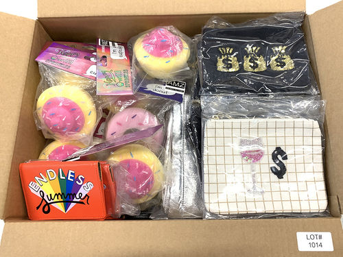 This lot contains different Sponges, Pouches, Passport Holders, Pet Shirts, Bags, and More General Merchandise from Madden Girl, Bow Drape, Celebrate Shop, and More. This is a mixed lot of brand new shelf pulls and closeouts from a famous dept store. Please see manifest and photos.
