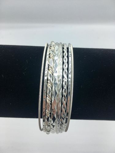 This lot includes 50 sets of Beautiful Stackable Diamond-cut Bangle Bracelets. Set of 8 pieces for Each Set x 50 Sets = 400 pieces total. Finish: Sterling SILVER, High Quality, Ideal for reselling in your store or online. All items are brand new.