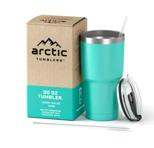 This lot includes Stainless Steel Vacuum Tumblers (Turquoise). EXTREME TEMPERATURE RETENTION - The Arctic Tumblers double-wall vacuum technology maximizes temperature retention that traps the cold in your beverages for 24 hours and the heat for up to 12 hours! The thermal insulated design keeps the flavor and freshness of your drink while preventing any temperature transfer to the exterior. No matter what the contents - hot tea, coffee, or an ice-cold beverage, the feel on this stainless vacuum tumbler remains constant! CUP HOLDER FRIENDLY – The slim tumbler base will fit most car, vehicle, bike, and boat cup holders and with a large 30 oz capacity, this cup is perfect for your iced tea or extra-large cup of joe!