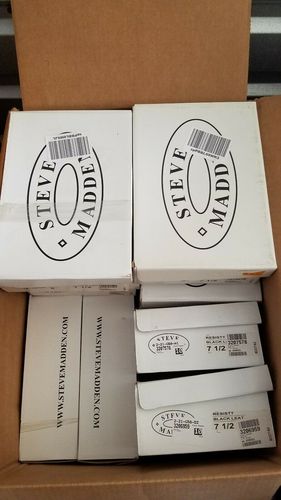 This listing is for a lot of 12 brand new shoes in original boxes and packaging. The lot includes: Steve madden Resistt boots. Colour- Black. Size-US 7.5 M. Features- Back-zip closure, Gold-tone hardware, Lace-up construction, Leather lining, Lightly padded insole, Flexible rubber outsole, Imported, Leather, Rubber sole, Shaft measures approximately 5.5" from the arch, and Heel measures approximately 1.25 inches.