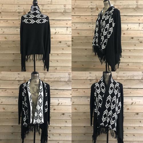 | Stitch Fix | Olive and Oak Geo Print Black and White Fringe Cardigan Large | New | $65 | 3 | $195 | ||