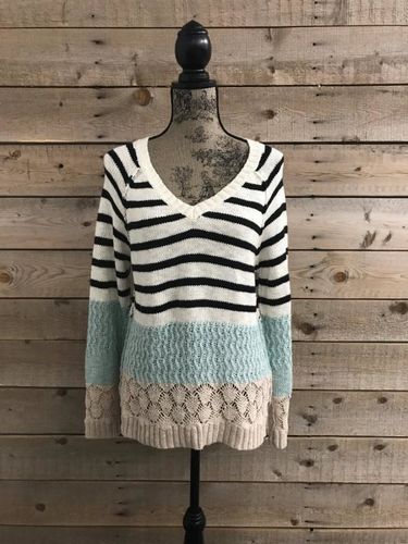 | Stitch Fix | Olive and Oak Sky Blue Mesh Striped Crew Neck Sweater Large | New | $50 | 5 | $250 | ||