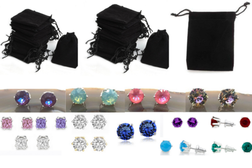 This lot includes 100 Pair Swarovski Stud Earrings in a Black Velvet Pouch, End Of Year Closeout. Lots of different colours! Genuine Swarovski Crystals. Each Pair of Earrings comes in a Black Velvet pouch. Shapes: Round & Princess cut. Sizes range from 4mm to 8mm for each stone. Finish Sterling Silver & Gold Overlay. Hypoallergenic POST. NICKEL AND LEAD-FREE. This lot includes Swarovski Elements - ( SWAROVSKI AUSTRIAN CRYSTALS) only. The jewellery itself is not from the Swarovski brand.