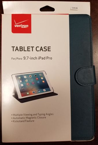 This lot includes 50 units of Original Verizon Tablet Cases for iPad Pro 9.7". Comes in Black Colour. Some features are Multiple Viewing & typing angles, Automatic magnetic closure, kickstand feature, and More. All items are in brand new and retail-ready condition.
