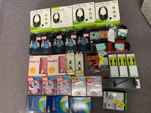 This lot includes different Tablets, Video Game, Headsets, Cables, and More Electronics Accessories from Merkury, RCA, BlackWeb, and More. Returns from a big box store. Please review images and manifest.