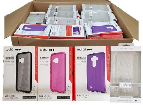 This lot contains 171 units of Tech21 and Case-Mate Cases for HTC One M9, LG G4 and more. All of the items are Brand New Condition. See manifest for products breakdown.