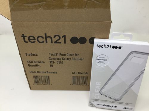 This lot includes 300 pieces of Tech21 Samsung Galaxy S8 Pure Cases, Clear. Units are individually retail packed, brand new, and bundled in sub-master cartons.