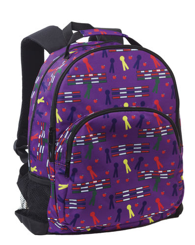 This lot includes 48 Tek Trek Backpacks. Purple w/ Rails & Ribbons. Three zippered compartments, padded back and shoulder straps, water bottle holders. 600 denier polyester. Measure 16"H x 11"W x 5"D.