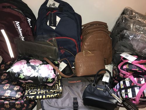 This lot includes Steve Madden, Betsey Johnson, Avalanche, Timberland & many more high end women's bags, lunch bags, travel bags & backpacks. All items are brand new with tags and in retail sale condition.