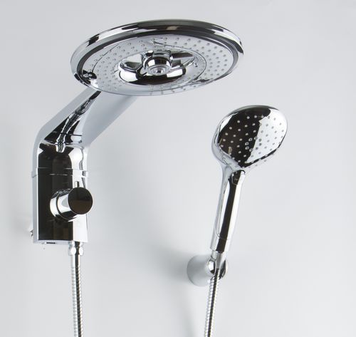 This lot is an overstock item of Trident Multi-function Shower System in Brushed Nickel from Borhn. They're a 2 function overhead shower with a handshower wand and can be easily installed to replace the standard showerhead in any shower. Used to upgrade a basic showerhead to a multi function rainhead/jet plus handshower on a hook. All items are brand new and ready for retail.