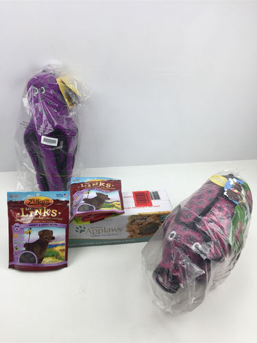 This lot includes various pet food and accessories from Tuffy, Four Paws, and more. All of the items are new and the foods have expiration dates in 2019, 2020, and further on.