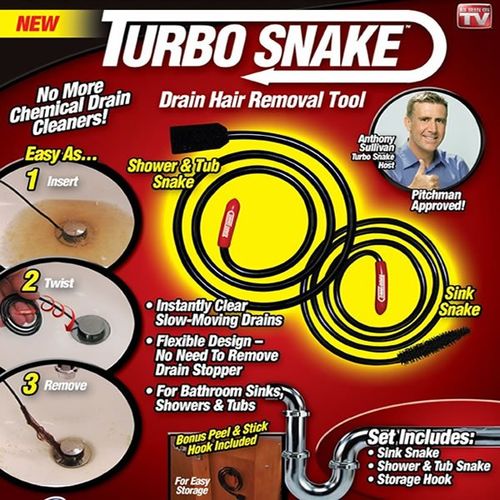 This lot includes Turbo Snake Drain Clog Remover. Fantastic product to buy low & sell high. Gotta clear out the room in the warehouse so you get a great deal.