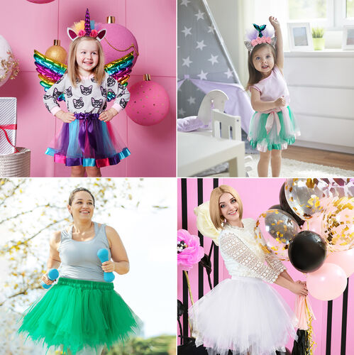 This lot includes Tutu Skirt for Women & Girls Tutu Skirts. Premium Quality: Ultra-soft premium quality tutu skirts with multiple layers of tulle and include a solid coloured lining; Each layer of tulle comes in different lengths to give it a fuller look, so you can also wear it under a dress or skirt as a petticoat to add more volume Stretchy Fit: Our tulle tutus each come with a stretchy, elastic waistband so that the tulle tutus don’t feel tight or restrictive; It also has a built-in, adjustable drawstring that allows you additional freedom to customize for the perfect, comfy fit. Fashionable Design: Who says tutus are only for kids? Our multi-layered adult tulle tutus add an extra pop and flare to any attire; This lovely tulle tutu will be the go-to statement piece that will make you look eye-catching and extra chic at that next party