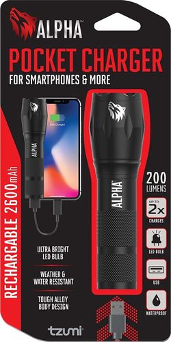 This lot includes 50 units of New TZUMI Alpha Pocket chargers, Power Banks 2600mah & Flashlight in retail pack. Ultra-bright LED, Weather Proof, Tough Alloy body Design. For Smartphone, Tablets & More.