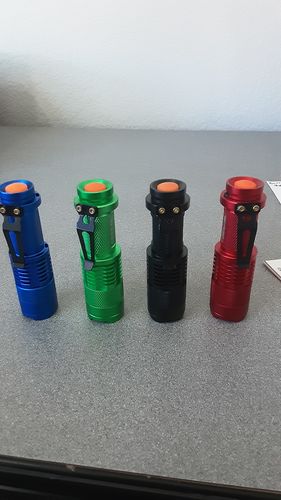 This lot includes 90 units of metal Ultrafire 300 Mini CREE LED Flashlights of assorted colours. Colours include blue, red, green, black and silver.