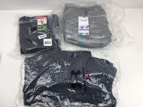 This lot includes various women's outdoor apparel from Under Armour, Arc'teryx, and more. All of the apparel are new and retail-ready.